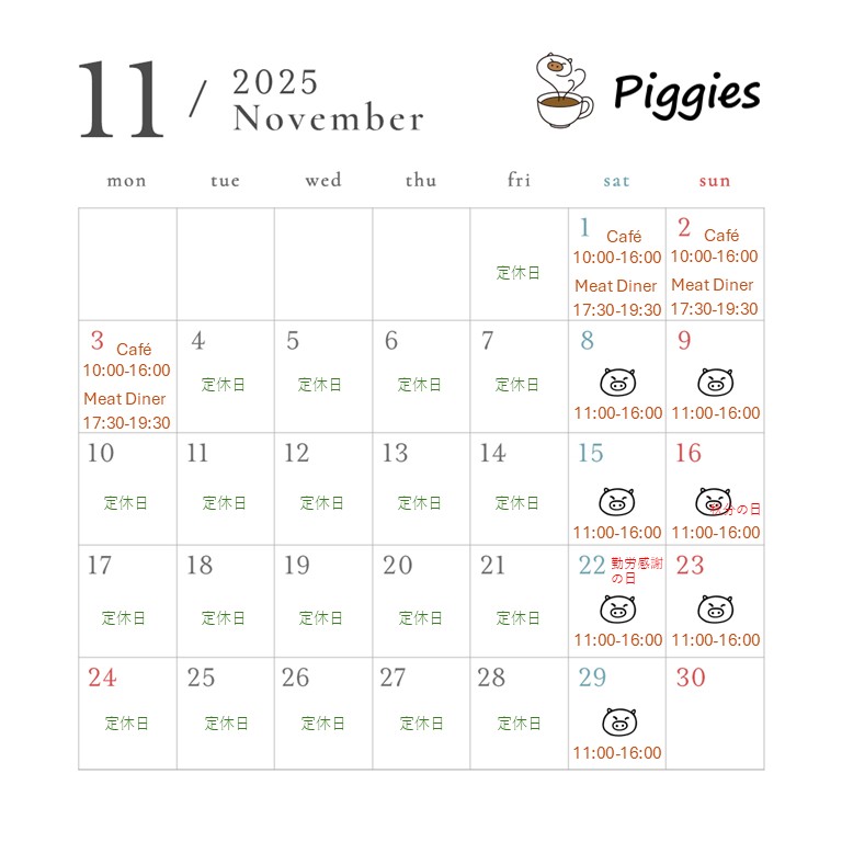11月の営業日のお知らせ